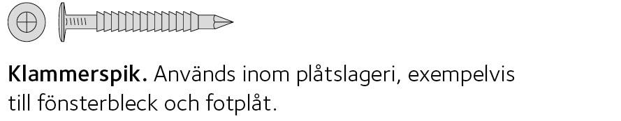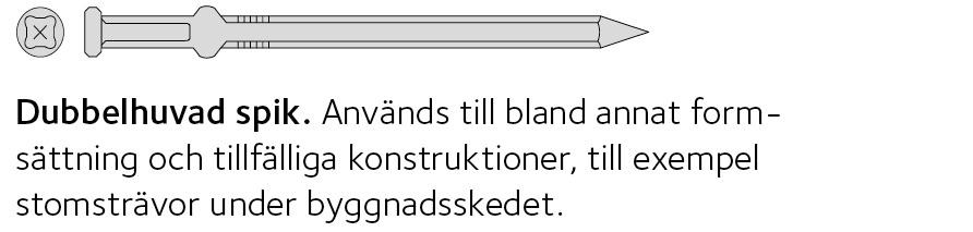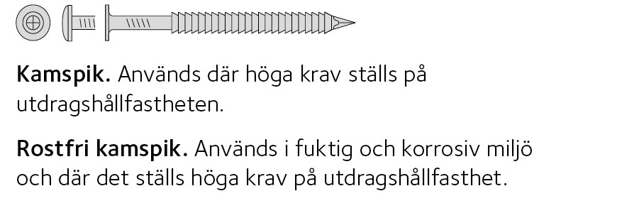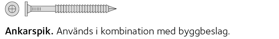 Spik, träskruv, dymlingar, skruvförband med bricka och mutter, klammer, byggbeslag eller spikplåtar |