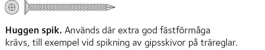 Trumpethuvud: för invändiga gipsskivor. Sexkantshuvud med invändig drivning som vid behov kan kompletteras med bricka.