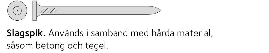 Trubbig spets: så kallad spikspets medför mindre risk för sprickbildning i virket än gängad spets.