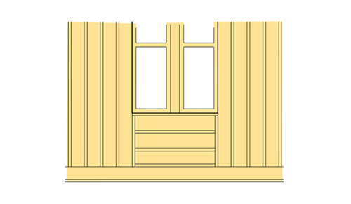 Hustypen uppfördes med genomgående stående reglar med en längd som stämde överens med normala stocklängder.