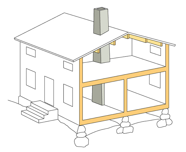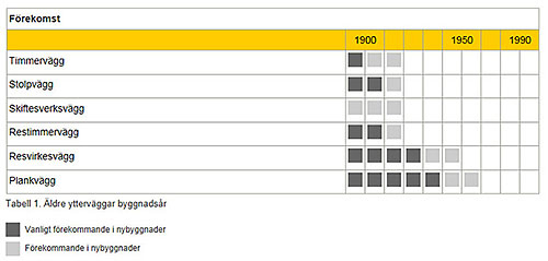 Några av de äldre väggkonstruktioner som förekommer visas här.