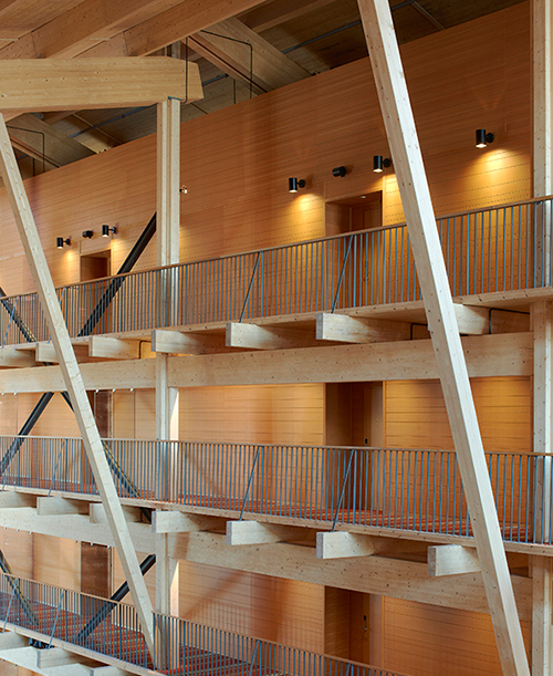 Interiör från Copperhill i Åre där olika belastnngsfall blivit ett pedagogiskt motiv i interiören.