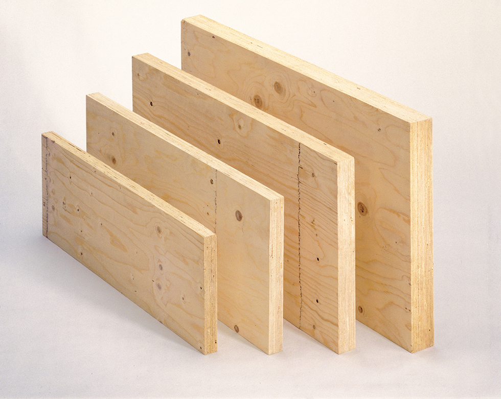 Fanerträ (LVL, Laminated Veneer Lumber). Foto: Moelven Töreboda.