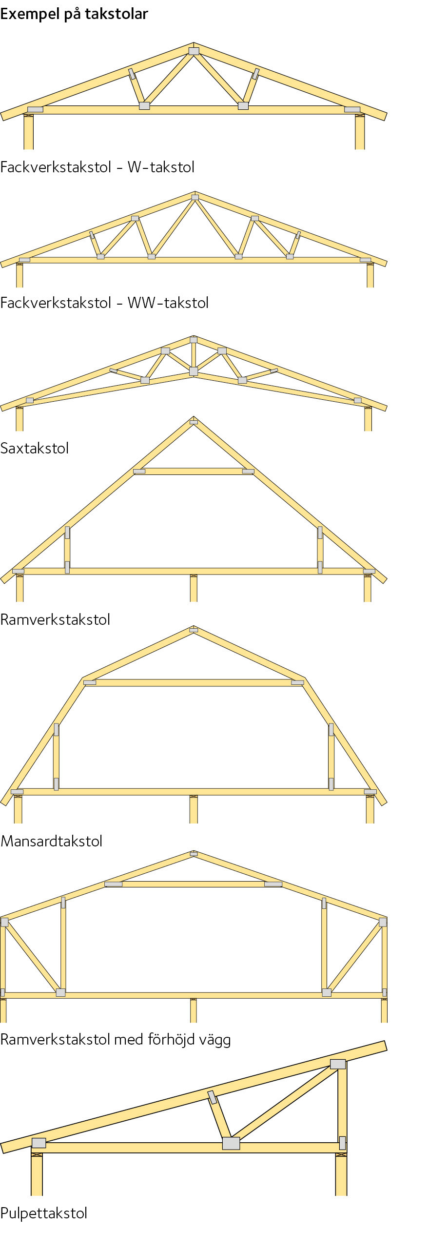 Takstolar kan även tillverkas på byggarbetsplatsen med beräkningsunderlag som följer Eurokod 5. Material till takstolar, såsom konstruktionsvirke, spikningsplåtar och ankarskruv eller ankarspik, ska vara CE-märkta och åtföljas av en prestandadeklaration.