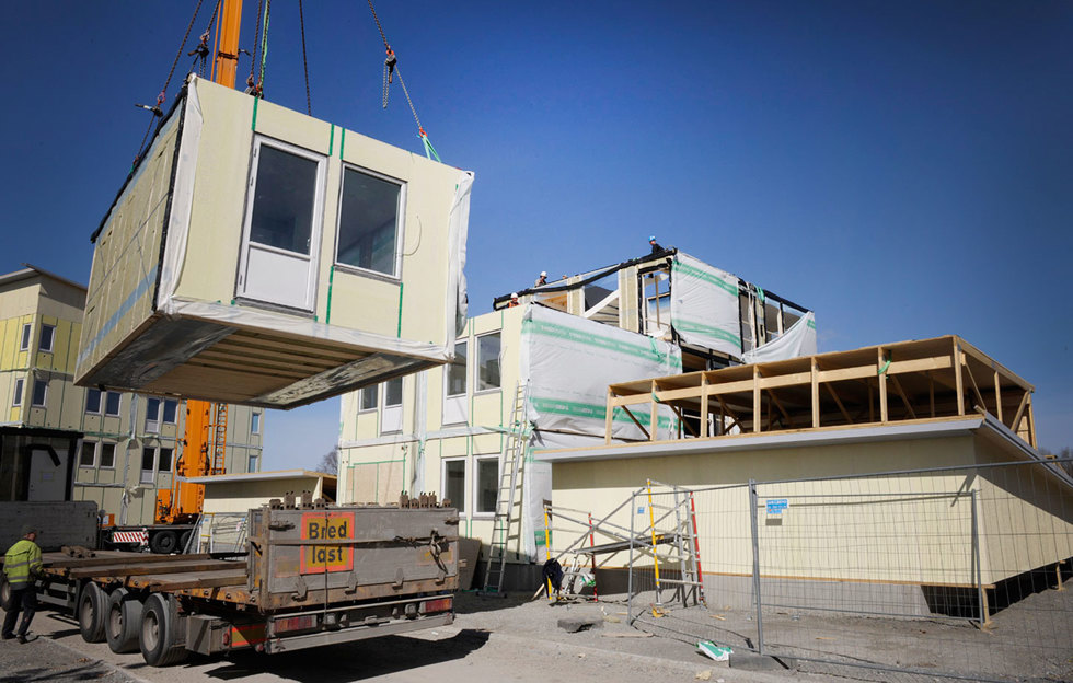 Kan en byggarbetsplats kännas trevlig och ombonad? Nja, det kanske är att ta i. Men en sak är säker, en arbetsplats med en ovanligt låg ljudnivå och låga mängder byggdamm utgör en betydligt trevligare arbetsmiljö. Med det moderna sättet att bygga trähus förvandlas byggarbetsplatsen till en monteringsplats.