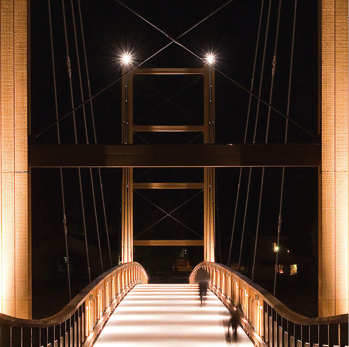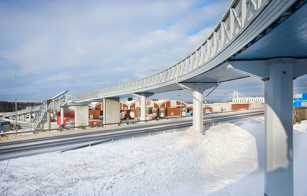 När den här gång- och cykelbron i Umeå, 230 meter lång, skulle monteras kunde tågtrafiken fortgå som vanligt, trots att bron går över ett järnvägsområde. Den delen av bron som korsar spåret kunde nämligen monteras på 45 minuter, det vill säga mellan två tåg.