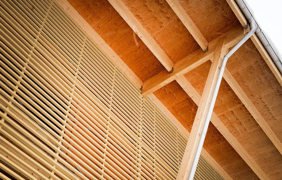 I det här estetiskt tilltalande parkeringsgaraget i Skellefteå från 2008 är allt i trä utom bilarna.