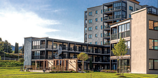BYGGARE: SKEPPSVIKEN FREDRIK KARLSSON, PROJEKTCHEF ”Vi tittade på några olika alternativ, och kom fram till att det limträbaserade Trä8 var det bästa alternativet, bland att på grund av att systemet garanterar ljudklass B för bostäder. Vi har byggt ett antal större byggnader med limträ tidigare och har väldigt bra erfarenheter både av processen och det färdiga resultatet. I det här fallet har processen varit mycket rationell och tidseffektiv, där vi har kunnat ha total kontroll över hela projektet. Förutom att det är ett härligt material att jobba i, så är också kunden och de boende supernöjda. Att det inte byggs ännu mer i trä är bara gammal vana i en ganska konservativ bransch, och jag kan bara uppmana fl er att testa. Ni blir inte besvikna.”