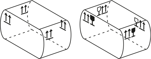 Indikerar upprätt position för förpackningen. | ![]() |