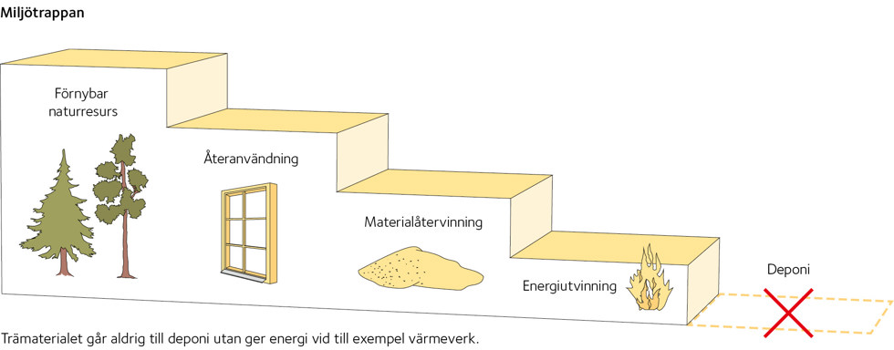 Målsättningen är att genom samverkan mellan olika aktörer röra sig uppåt längs avfallstrappans fem steg.