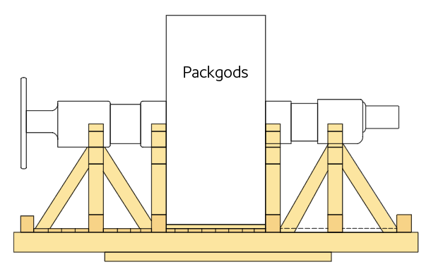 Figur 4.30 Exempel på inredning för att stötta ett gods med förskjuten tyngdpunkt så att vikten fördelas jämnt över hela botten på förpackningen.