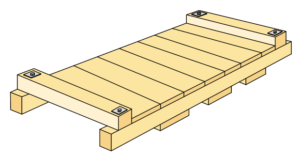 Figur 4.32 Blockeringsmetod för lådor och häckar, med fastskruvade träreglar i botten innanför gavlarna.
