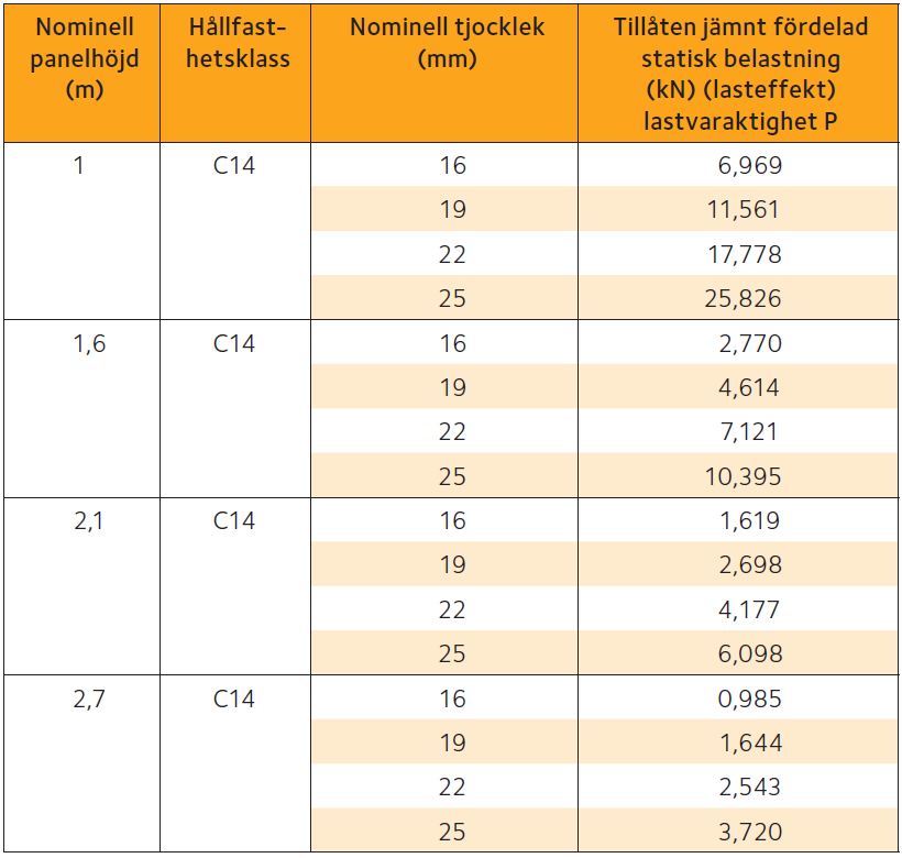 Tabell 4.7 Tillåten tryckbelastning per löpmeter väggpanel