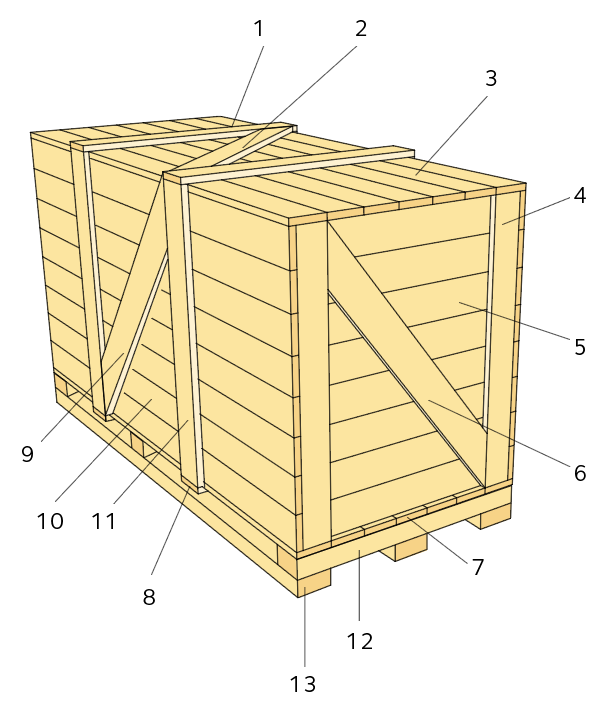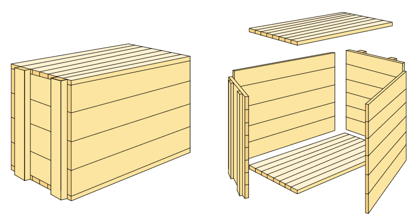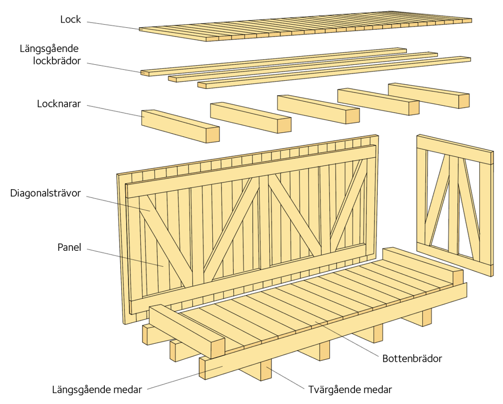Figur 4.23 Exempel på uppbyggnad av lock till exportförpackning av trä.