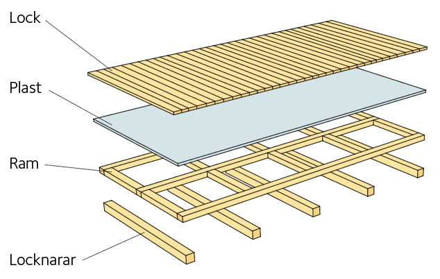 1) Alla material är av de lägsta kvalitetsklasserna, utom barrträ med not och spont, som är av G4-2 enligt SS-EN 1611-1.