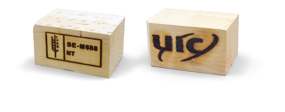 Träkloss med bränd märkning.