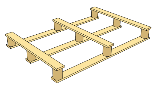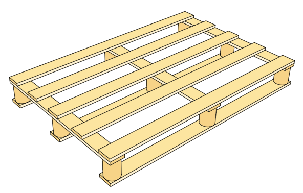 Figur 4.6 Vanlig utformning av enkel pall i klent virke för lättare gods och få planerade transportturer.