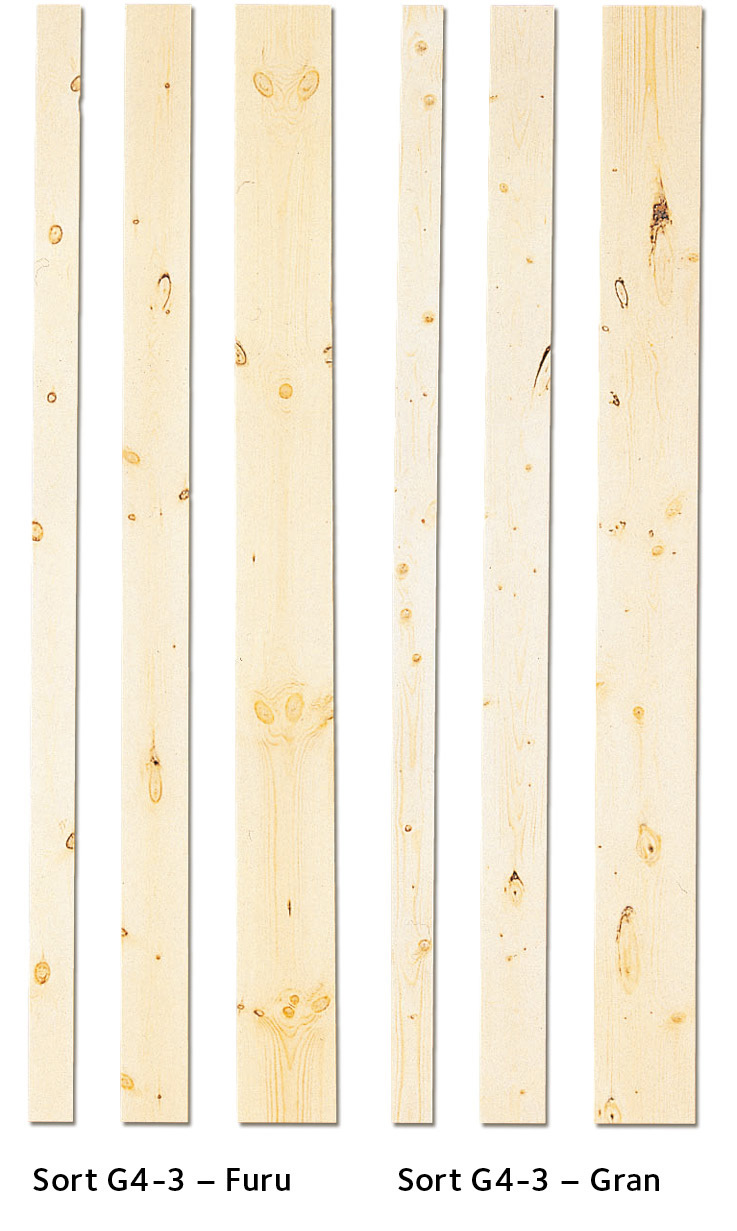 Traditionellt har handelssorten G4-3 enligt SS-EN 1611-1 använts och föreskrivits för emballagevirke.