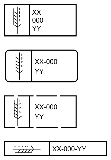 Figur 1.1 Exempel på tillåtna varianter av ISPM 15-märket.