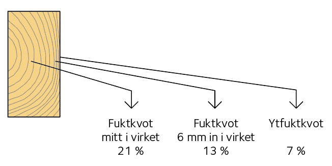En låg fuktkvotsgradient är en viktig kvalitetsfaktor som förhindrar ojämn krympning och kupning.