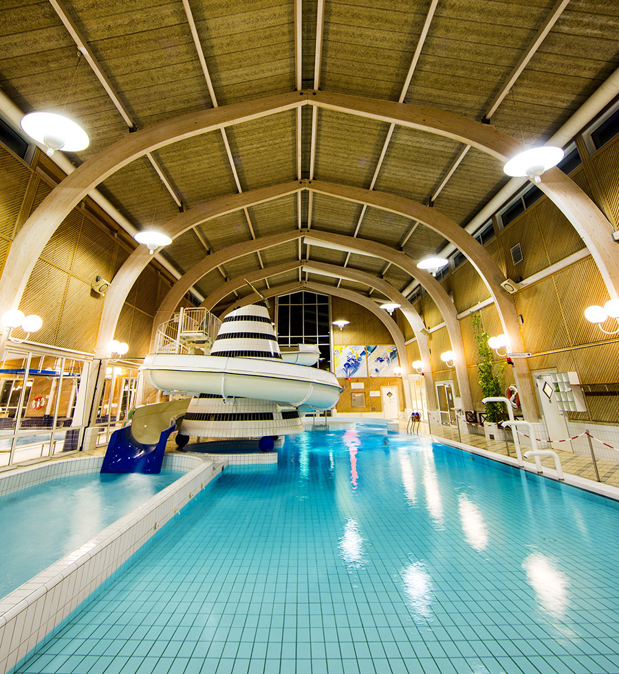| Övrigt: | Här finns äventyrsbad i en varm tropisk miljö, en 47 meter lång vattenrutschbana, virvelkanal, gejser, bubbelpool, en 25-meters motionsbassäng, barnbassäng och barnpool. Familjebad, relax och gym. |