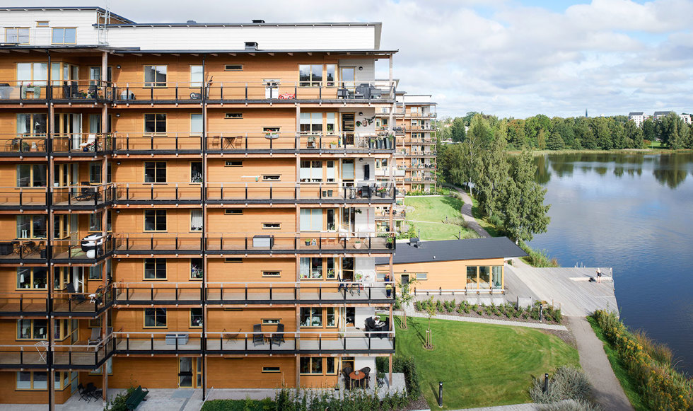 Varför bygger man åttavånings bostadshus i trä? En förklaring, tillsammans med alla andra, får man när man kommer in i husen i kvarteret Limnologen, vackert belägna vid sjön Trummen i Växjö. Här finns träkänslan. Den finns i doften, i tystnaden, i luften, i helheten. De fyra husen är helt byggda i trä: stomme, bjälklag, väggar och även hisschakten. Den understa våningen är dock djuten i betong för att ge husen tillräcklig stabilitet. Kvarteret Limnologen utgör ett lysande exempel på hur man kan bygga stort och spännande i trä.