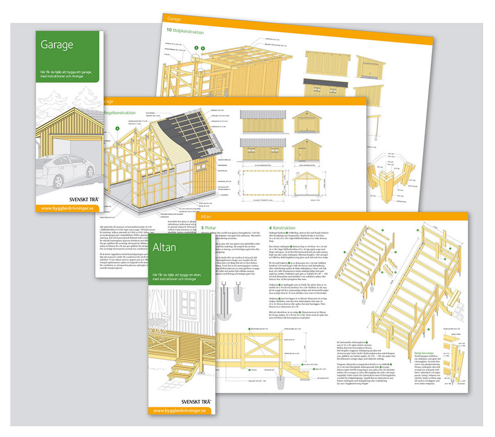 Byggbeskrivningarna beskriver utförligt hur du bygger i trä, steg för steg med instruktioner, illustrationer och arbetsritningar.