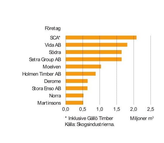 Figur 17 Sveriges största tillverkare av sågade barrträvaror, produktion 2019