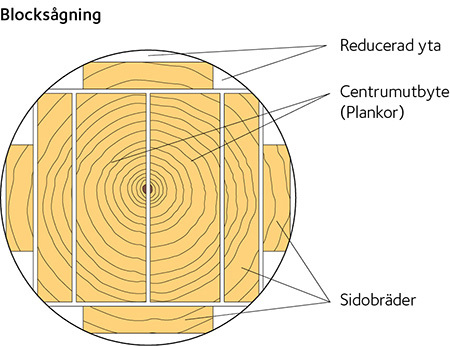 Figur 19 Exempel på fyrsågning, 3x-sågning
