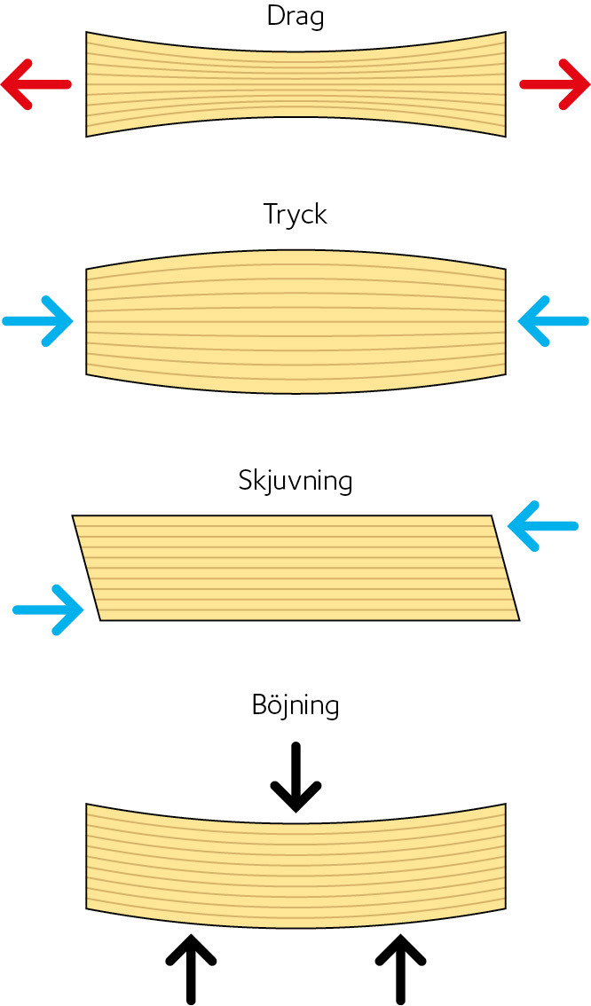 - Böjhållfastheten tas helst i anspråk längs fiberriktningen