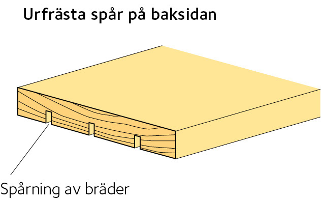 Panelbrädor kan ha urfrästa spår på baksidan för att begränsa formförändringarna. Det gäller oftast invändiga panelbrädor.