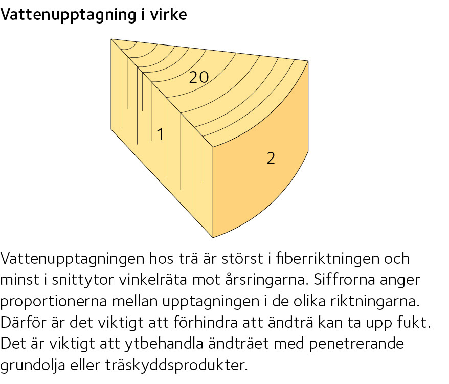 Då klimatet varierar under året kommer också träets fuktinnehåll förändras. Inomhus kommer trä att torka och krympa under vintermånaderna för att sedan ta upp fukt och svälla igen under sommaren.