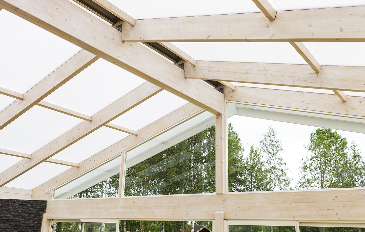 eller -skruvat nock- eller hörnparti. Lamelltjockleken för krökta element är normalt 33 mm, men vid krökningsradier mindre än 7 m krävs tunnare lameller.