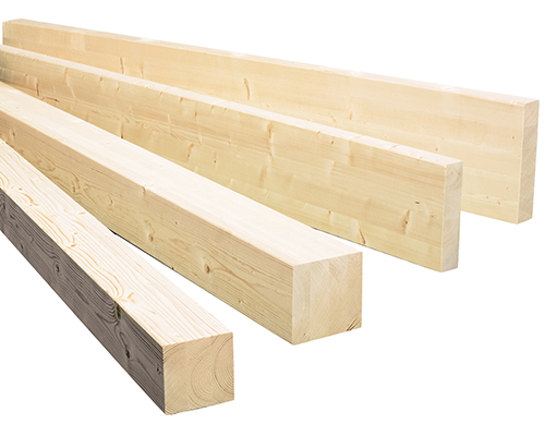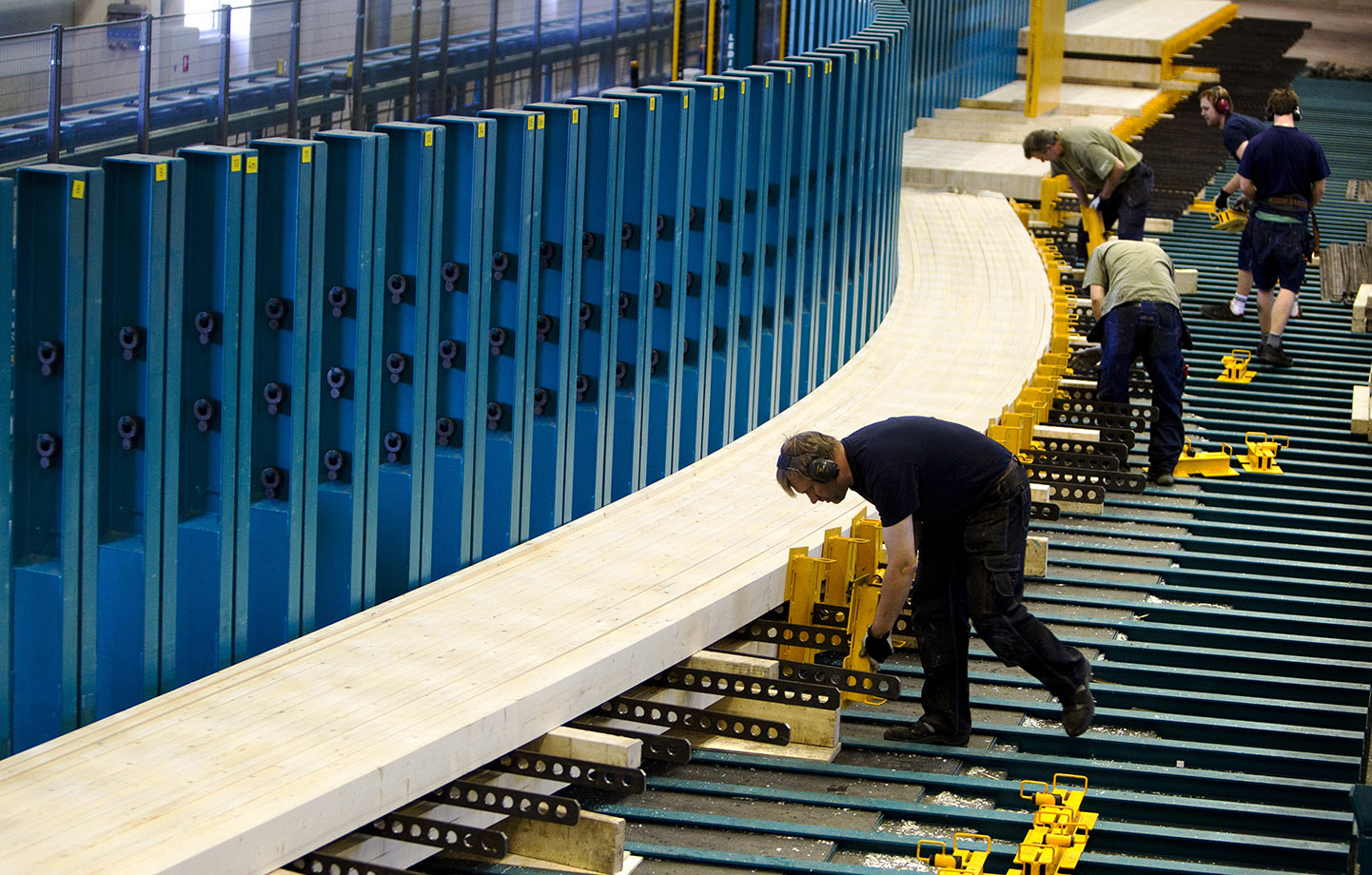 - trälameller (reglar eller plankor) staplas och limmas mot varandra till stora konstruktionselement. Storlek och längd begränsas i första hand av transportmöjligheterna.