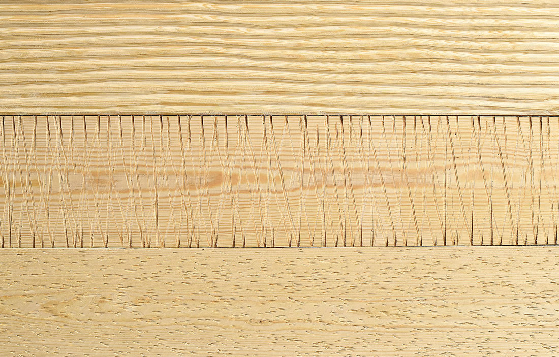 Under ett seminarium anordnat av Svenskt Trä våren 2015 presenterade studenter från Carl Malmstensskolan ett arbete kring hur furuns yta kan borstas, färgas och målas för att ändra färg och struktur.