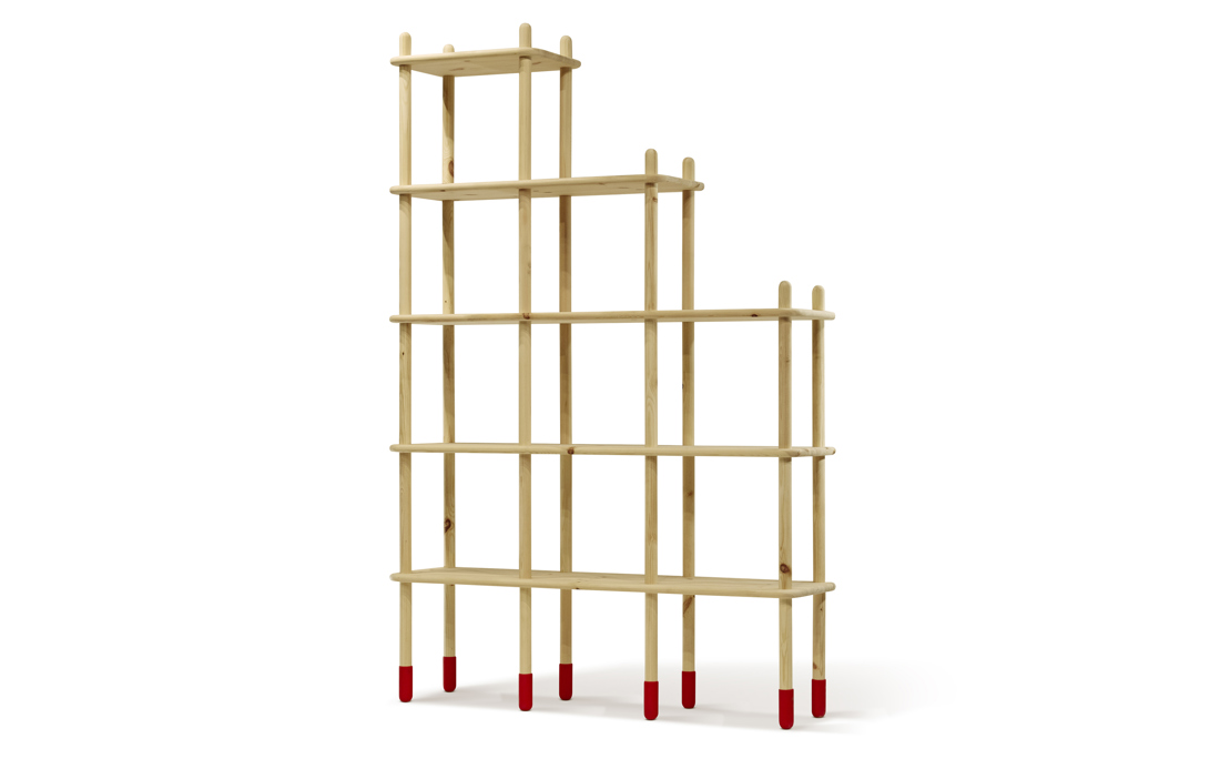 Enkla raka linjer formar en symmetrisk estetik och inbjuder användare till kreativitet. Hyllan kan förpackas som ett platt paket.