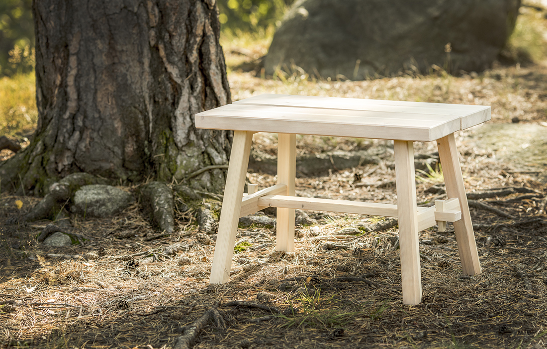 Pinustool är en knock-down pall snickrad i svensk furu.