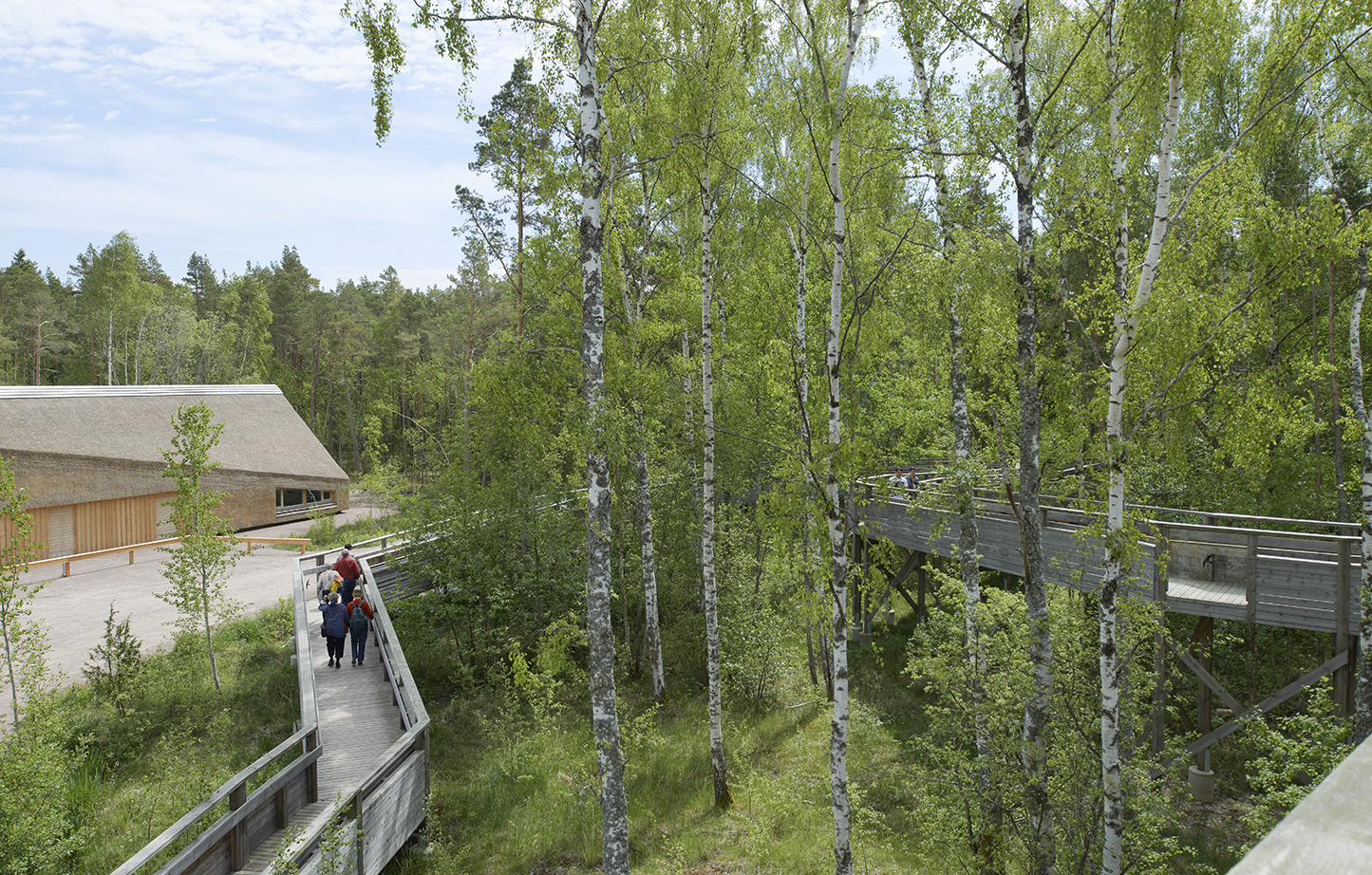 Fågeltornet finansierades och byggdes först. En 140 meter lång ramp lyfter rullstolsburna och rullatorstödda 5,5 meter över stranden. Den vindlande rampen vänder betraktarens ögon tillbaks in i träddungens fågelbestånd och bygger upp förväntan. Lusten att bekvämt vandra gör att de flesta väljer den här vägen upp i tornet (= värdig tillgänglighet).