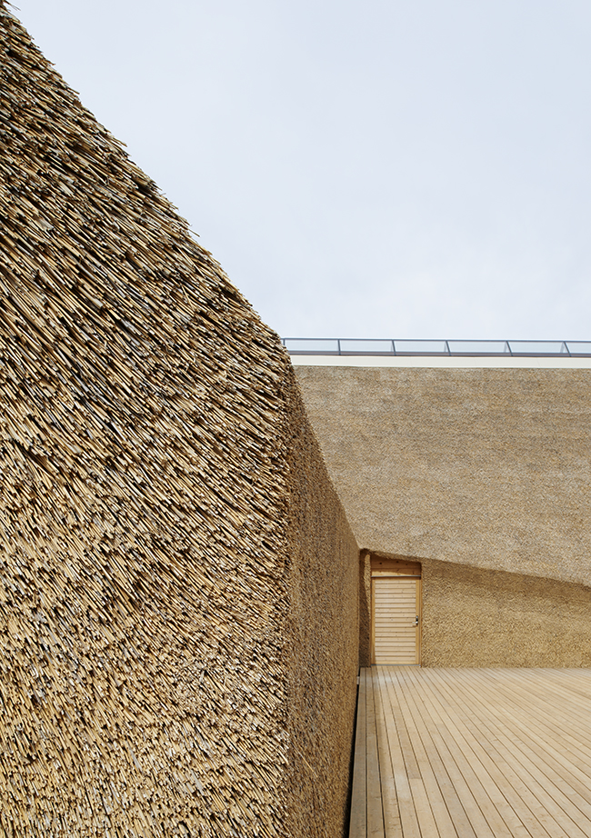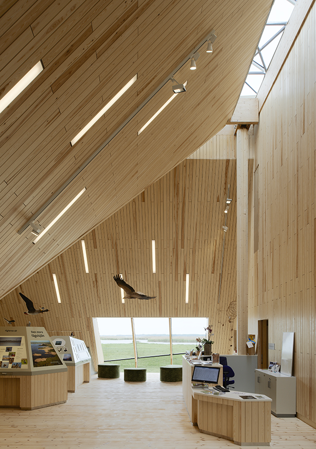 Hela sekvensen i besöket är välregisserad på ett ödmjukt sätt som låter naturen dominera över parkeringsplatser, entréportal, stig och entréplats. Situationen med solen i söder och utsikten mot sjön i norr är elegant omhändertagen med en generös läplats mot söder och stora öppningar mot norr som tar in hela spektrat av fågellivet i sjön och på strandängarna, själva anledningen till projektet. Volymen i vass har ett starkt eget uttryck som balanserar perfekt på gränsen mellan platsanpassning och ny överraskande gestalt. Stealthformen möter historiskt byggmaterial och musik uppstår. Vassbeklädnaden kan påminna om päls och inbjuder till beröring. Träet är starkt närvarande i interiören, en enkel och rättfram panelbeklädnad, effektivt och vackert dagsljusbelyst från lanterniner längs nocken. Sammantaget ett helgjutet arkitektoniskt verk där plats, funktion, teknik och upplevelse sammansmälter till en vibrerande skön helhet.