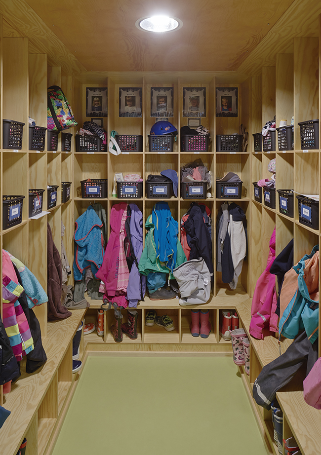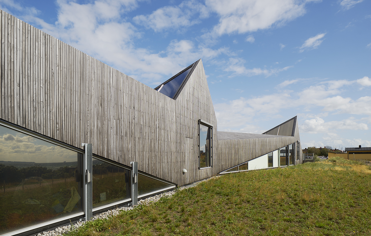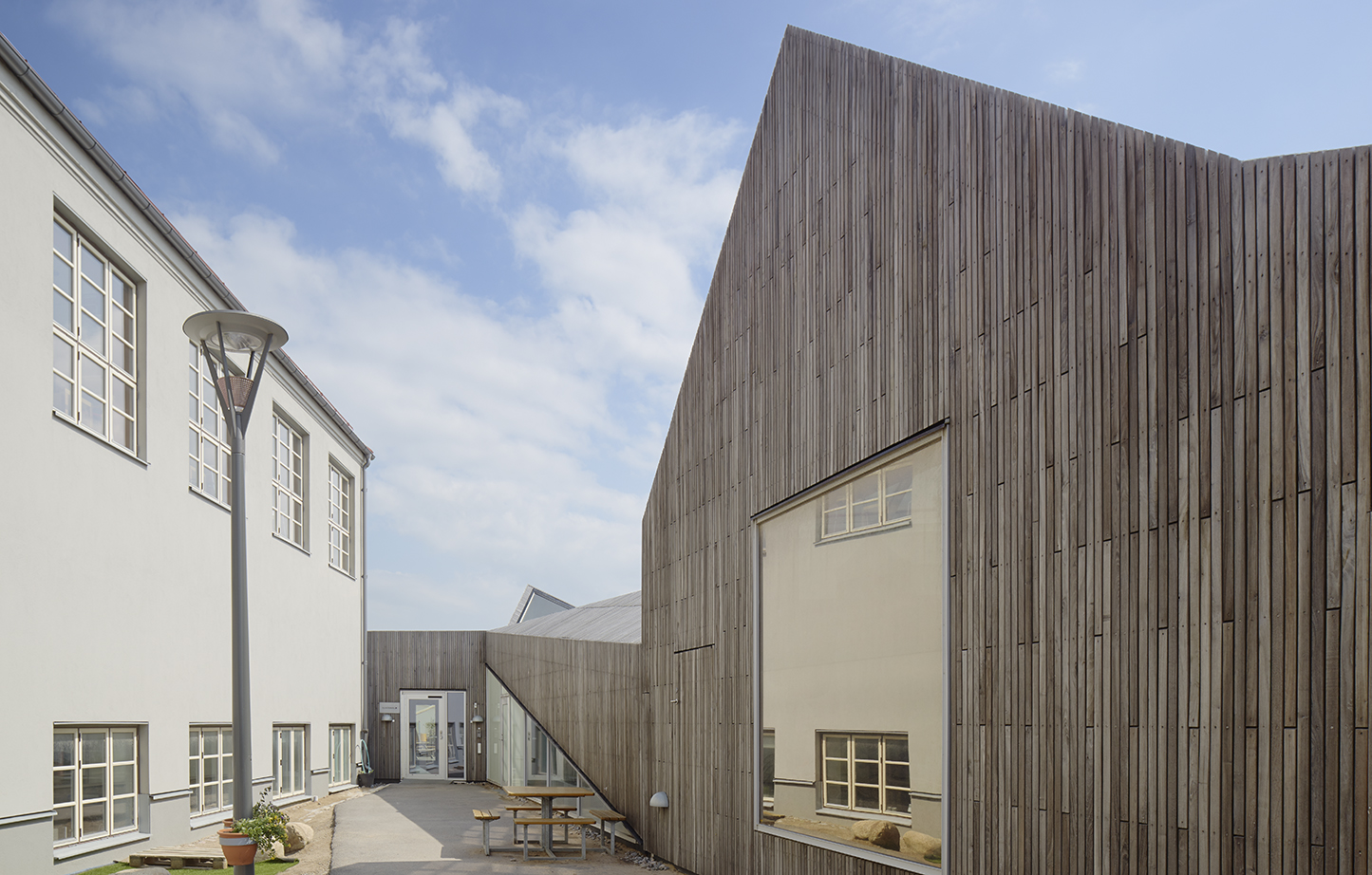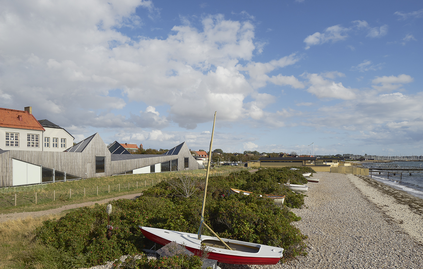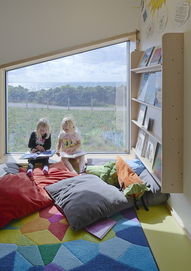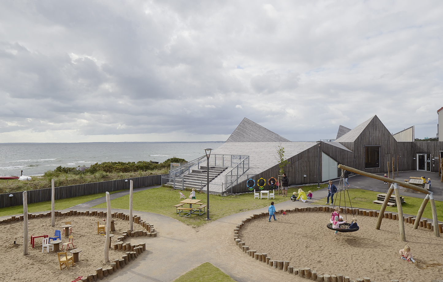 Vid förskolans övergång och koppling till den existerande skolan har ett grottliknande utrymme för garderober skapats. Dold från Öresund skapas mot den gamla skolan en naturlig lekplats. Mot stranden har vegetationen återställts. Projektet startade 2008 och har löpande under den långa processen genomsyrats av en kontinuerlig dialog med brukaren.