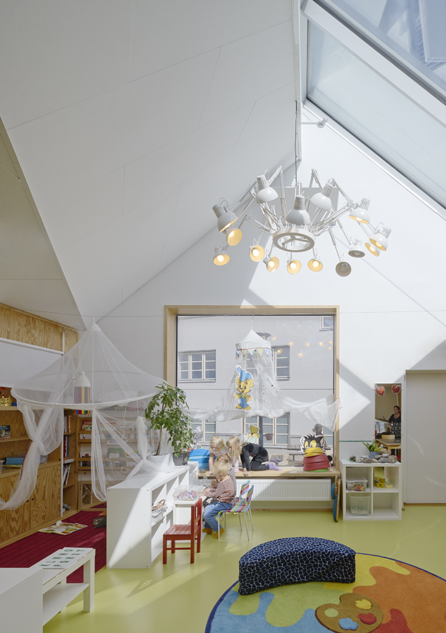 I den natursköna strandmiljön mellan Råå Södra Skola och Öresund ligger Råå förskola. Byggnaden tar utgångspunkt i det omgivande landskapet, de svagt sluttande sanddynerna och den lilla fiskebyn med sin särskilda typologi. Förskolan har fyra grupper av barn, var och en med en byggnadsdel som identifierar sig i fasaden som gaveln på ett fiskehus. Mellan gavlarna har öppna rum placerats med stora fönster i fasaden och i taket. Det skapas en nära kontakt med havet och det omgivande landskapet samt optimala dagsljusförhållanden året runt. Grupprummen avgränsas av visuellt öppna rumsindelande bokhyllor av plywood, som tillsammans med gröna golv bidrar till att skapa en överskådbar upplevelse av rumssammanhangen.