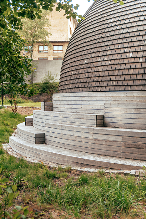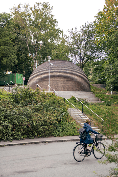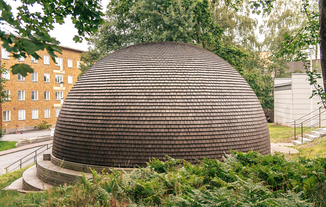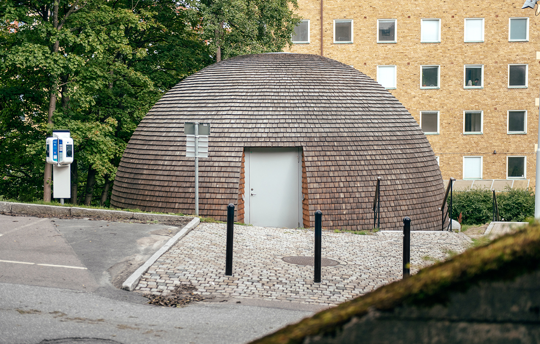 Infrastruktur. Vi klarar oss inte utan. Men slipper helst tänka på den. Så blir också dessa nyttobyggnader därefter, anonyma och slarvigt utförda. Till skillnad från fjärrkylacentralen på Medicinareberget i Göteborg, vill säga, som klätts i furuspån – kupolformen har hanterats lika omsorgsfullt som ett kyrktak – och försetts med en vackert välvd ”sollapartrappa" mot söder. Ett vackert "conversation piece" placerat precis på gränsen mellan stadens bostadsbebyggelse och institutionsbyggnaderna på höjden. Så här ska det se ut!