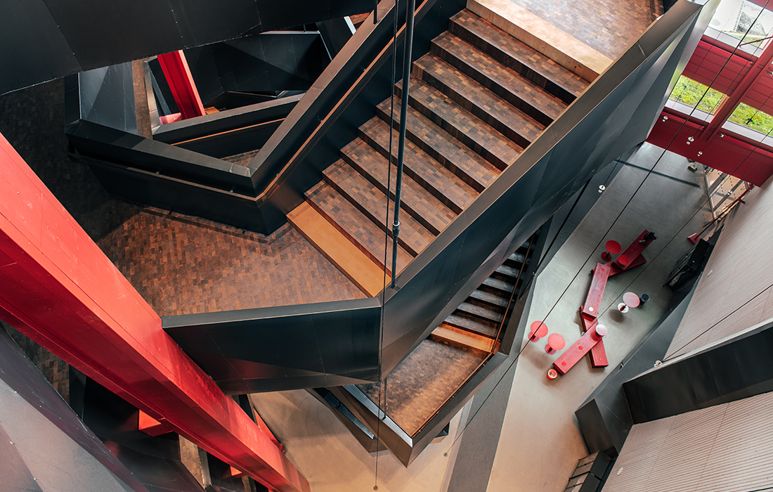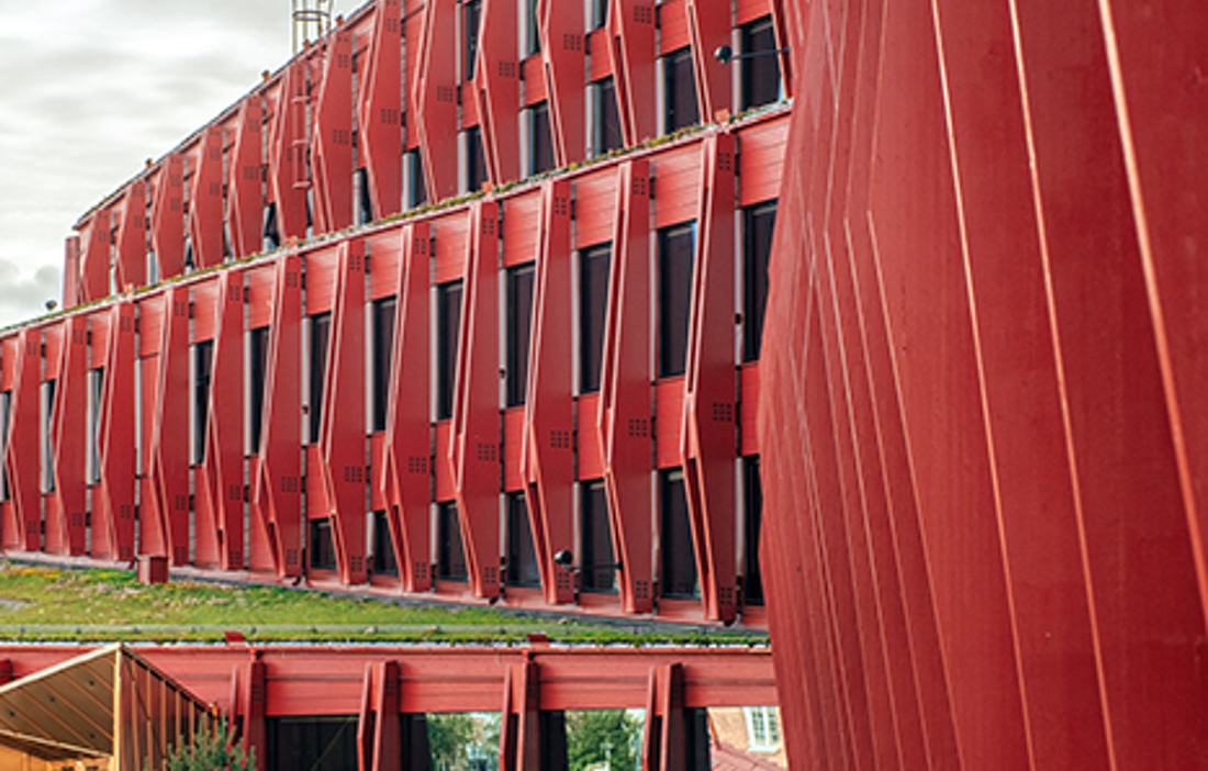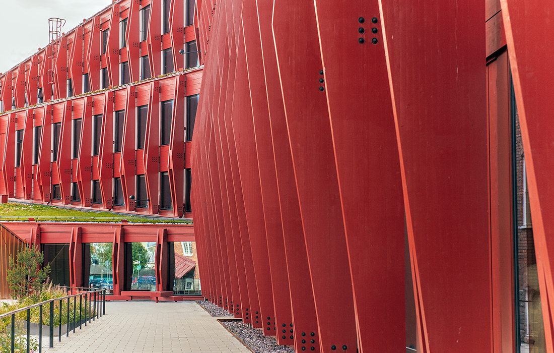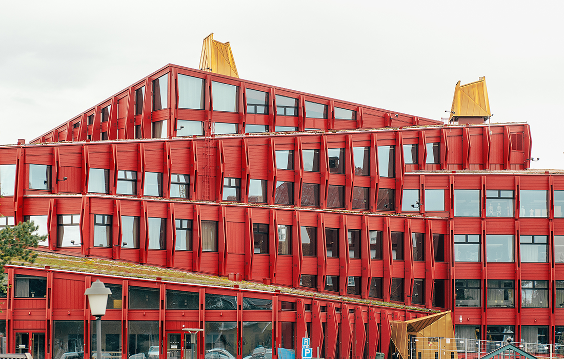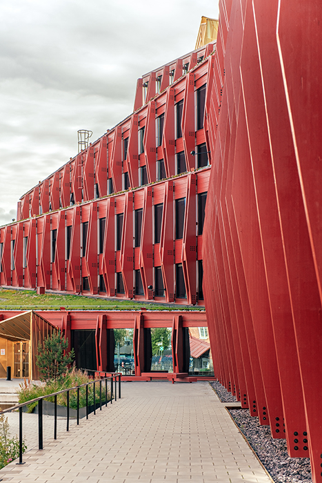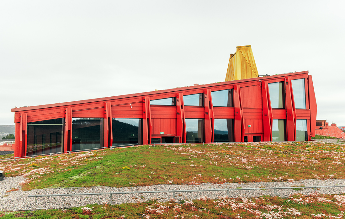 Som ett vänligt sinnat djur med en hud av blodröda träfjäll sveper Kunskapshuset i Gällivare sig om och runt besökaren, staden och landskapet. Kunskapshuset har landat på en före detta parkeringsplats, kilat in sig bakom stadens tegelröda museum, mellan köpcentret och kyrkan, med rådhuset i ryggen – en svår tomt som den djärvt organiska byggnaden vänder till sin fördel. Resultatet är ett modernt kulturlandskap som står förankrad i nutid och dåtid skapat i bred samverkan. En kommunal investering i kunskap och trä när två orter ska bli en!