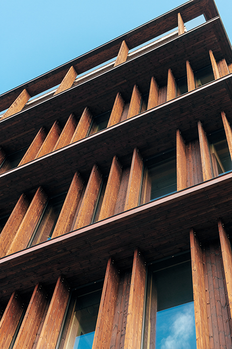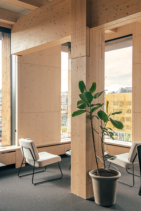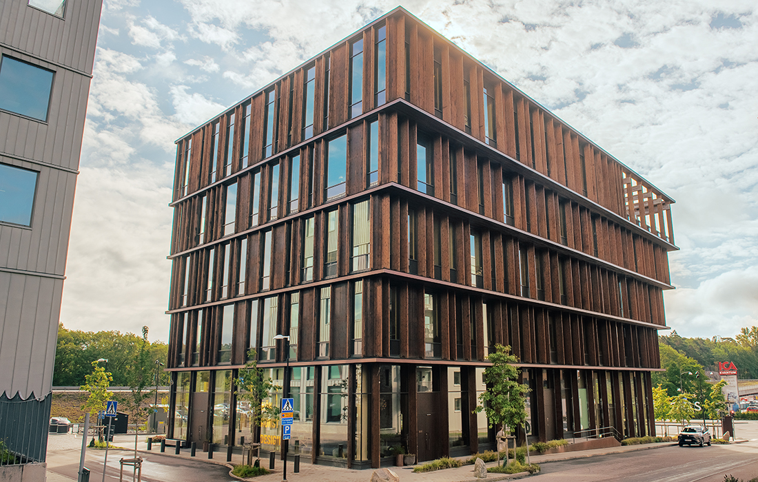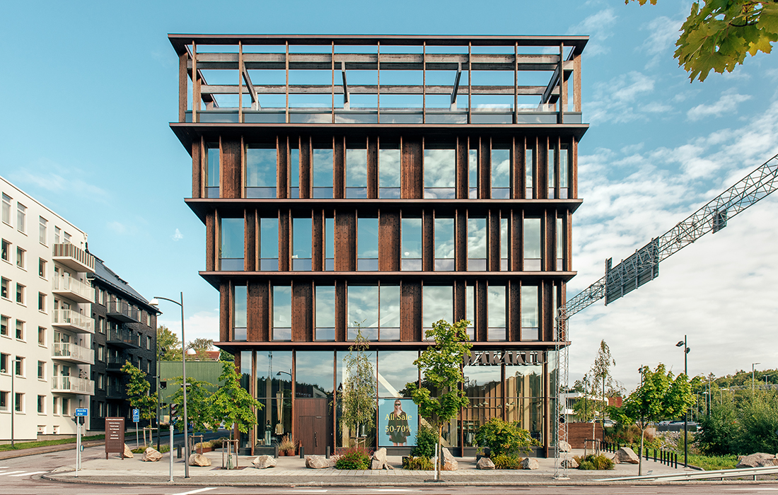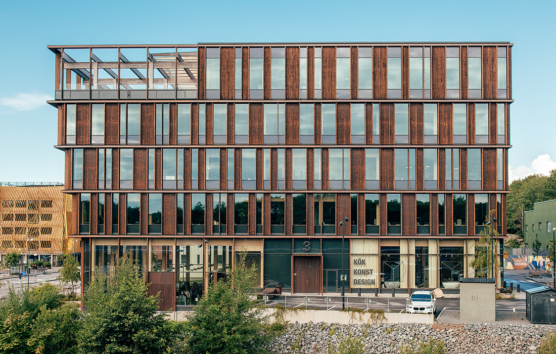 Byggnaden är en uppvisning i hur en rationell och flexibel kontorsbyggnad kan vara både robust och elegant. Den synliga trästommen tillsammans med våningarnas utkragningar skapar karaktär och ger platsen identitet. Byggnadens karaktärisktiska silhuett tecknar sig redan på avstånd. Den högresta bottenvåningen bjuder in besökaren och bidrar till att skapa en levande plats. Interiört är materialval och förgskala begränsad för att inte ta fokus från helheten. Placeringen av installationer är väl genomtänkt och de får den underordnande plats de ska ha i en interiör. Ett extra plus för det snygga skyltsystemet.