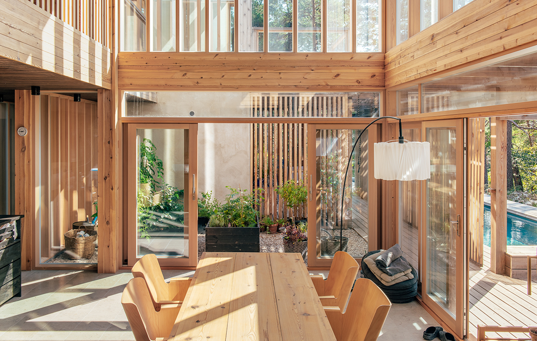 Att vandra runt i villa Meltem är som att kliva rakt in i arkitekturens grammatik och få uppleva den breda palett som finns men som alltför sällan nyttjas. Huset går inte att greppa vid första anblicken utan upptäcks gradvis. Här finns alla typer av rumsligheter, från slutna rum till halvöppna, under tak eller i lä. Man rör sig från rum med dubbel takhöjd till snäva och låga där man sitter nära golvet. Det är en upptäcktsfärd för sinnena, att färdas utan att resa bort och där trä är en ständig följeslagare.