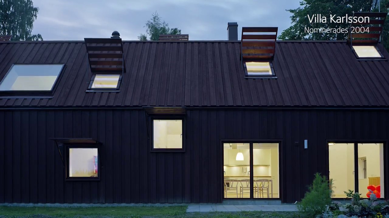 Villa Karlsson stod klart år 2003 och är byggd i Västerås och är en faluröd sadeltakslänga inspirerad av svensk träbyggnadstradition.