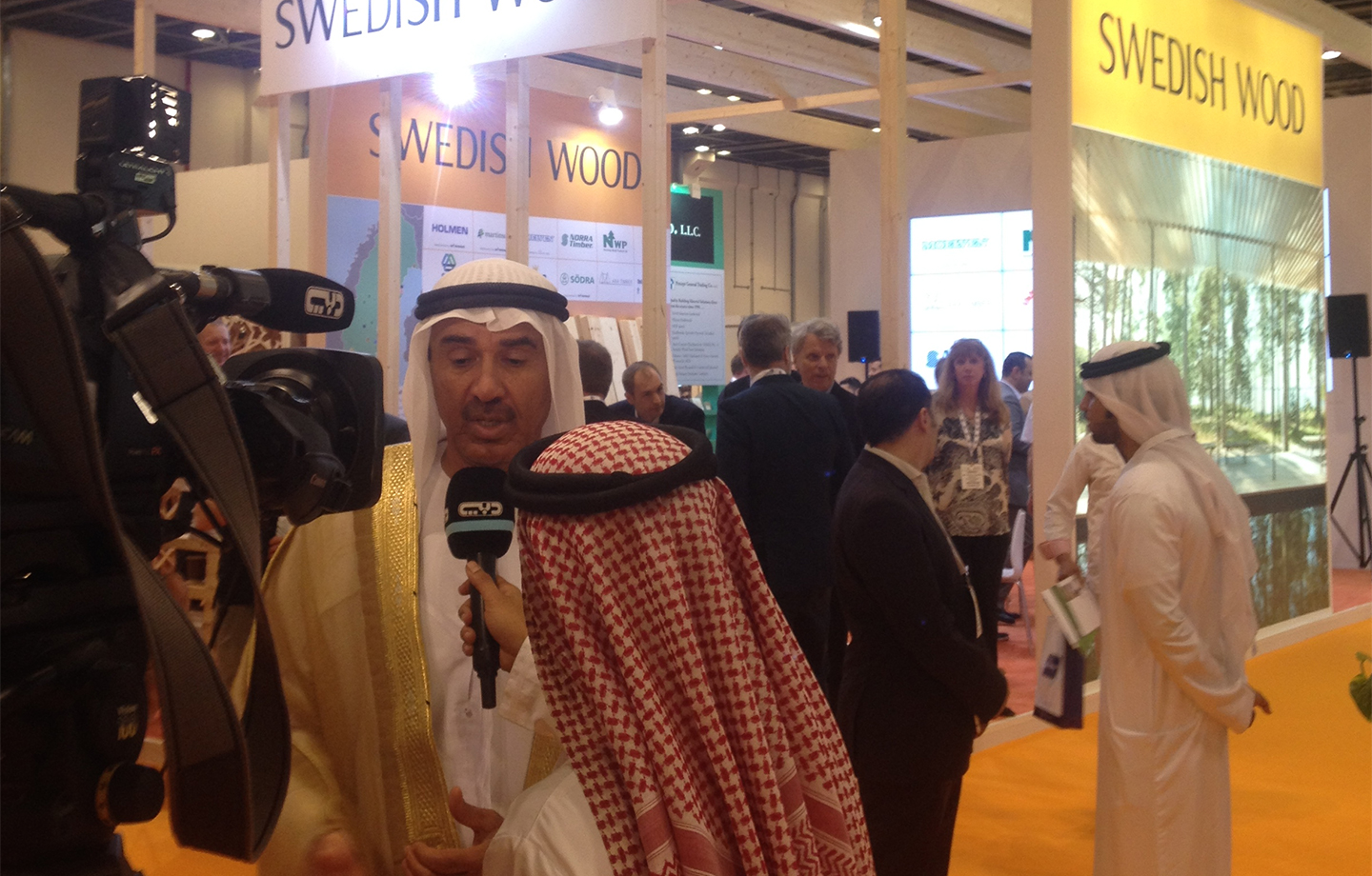 Hans Excellens Hussain Nasser Lootah, generaldirektör för Dubai Municipality, visade sitt intresse för modernt träbyggande och möbeldesign i trä genom att besöka invigningen av Svenskt Träs paviljong på Dubai Wood Show, Mellanösterns största mässa för träprodukter. I den svenska paviljongen deltog tio svenska sågverksföretag, som tillsammans representerar cirka 70 procent av den svenska träexporten.