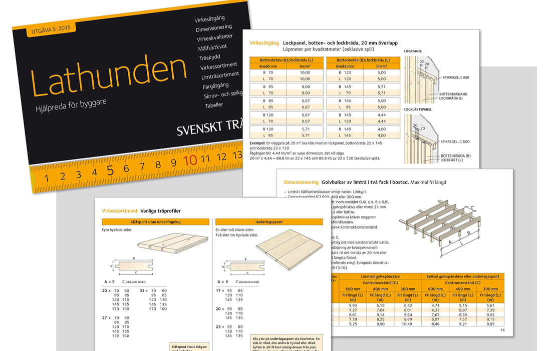 Lathundens dimensioneringstabeller är anpassade efter de senaste dimensioneringsreglerna EKS 9 (BFS 2013:10). Lathunden vänder sig främst till hantverkare, arkitekter, konstruktörer, anställda i bygg- och trävaruhandeln och privatpersoner.