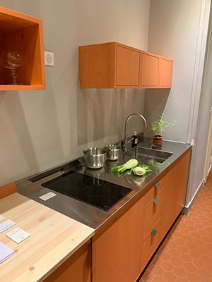 Svenska institutet i Paris renoverar sina sex gästlägenheter för att stärka designprofilen med fokus på svensk design och hantverk, hållbarhet, innovation och kvalitet. Satsningen går under namnet Swedish Design Moves och Hem x 6. Ett av köken, ett modernt rosa furukök, formgavs av Lisa Lindh och Klara Hedengren som är svenska alumni från Beckmans.