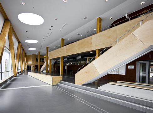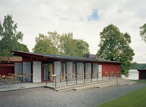 - Övre delen av byggnaden är klädd med kanalplast som släpper in ljus och skapar lagom insyn samtidigt som det ger en sober ton.